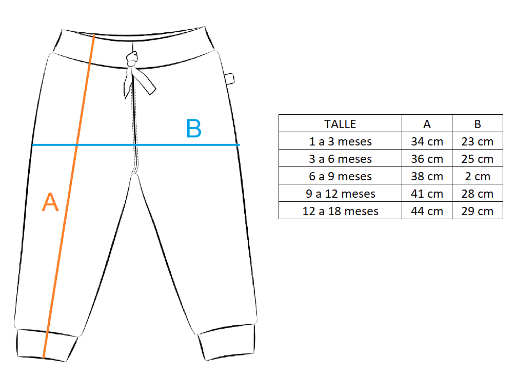 Podés chequear los talles comparando la tabla de con una prenda similar que le quede bien a tu bebé.