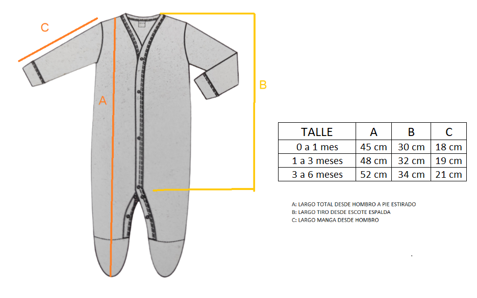 Podés chequear los talles comparando la tabla con una prenda similar que le quede bien a tu bebé.