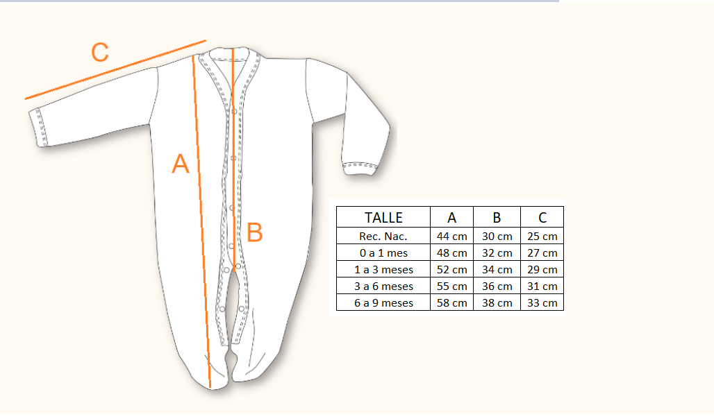 Podés chequear los talles comparando la tabla de con una prenda similar que le quede bien a tu bebé.