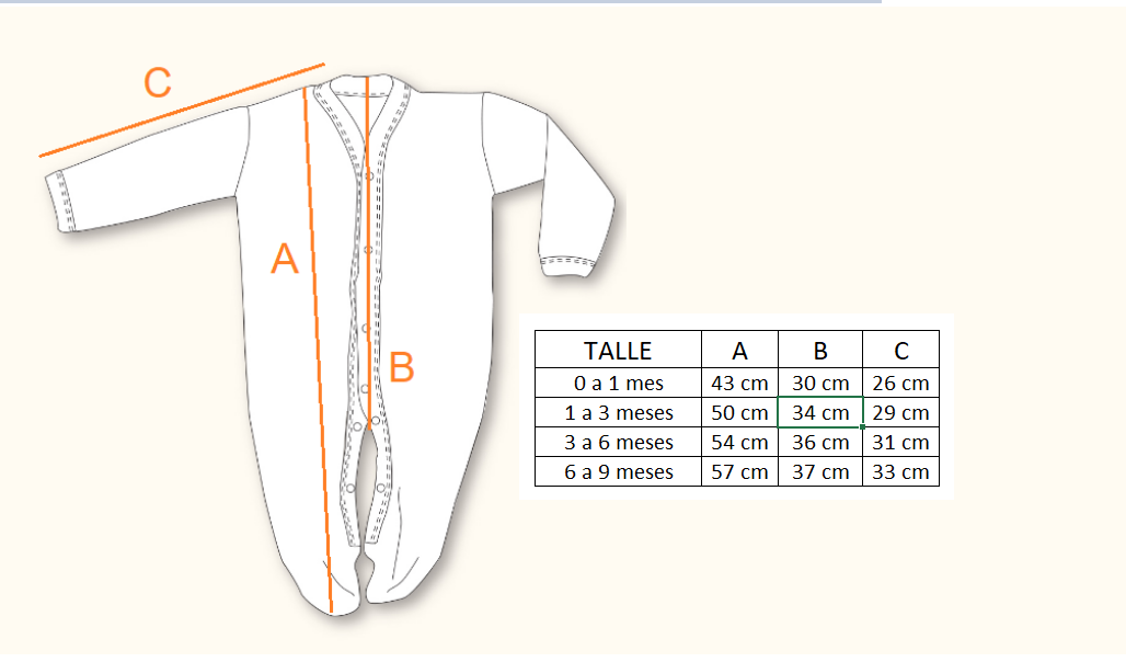 Podés chequear los talles comparando la tabla de con una prenda similar que le quede bien a tu bebé.