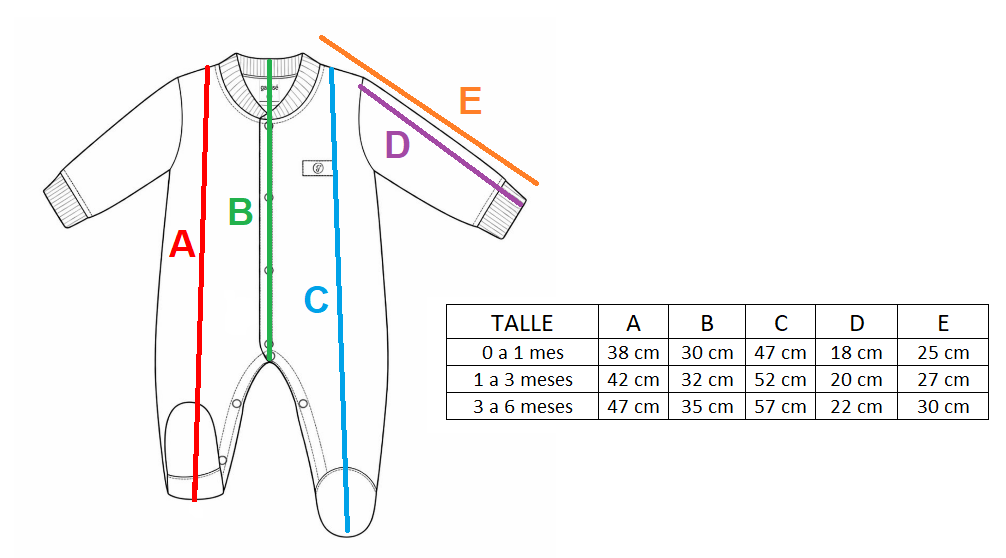 Podés chequear los talles comparando la tabla de con una prenda similar que le quede bien a tu bebé.
