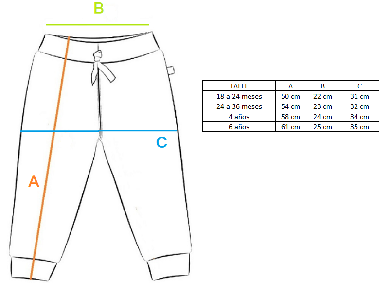 Podés chequear los talles comparando la tabla de medidas con un pantalón que le quede bien a tu beb@