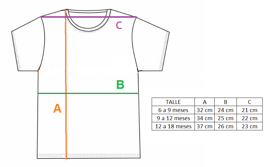 Podés chequear los talles comparando la tabla de medidas con una remerita que le quede bien a tu bebé.